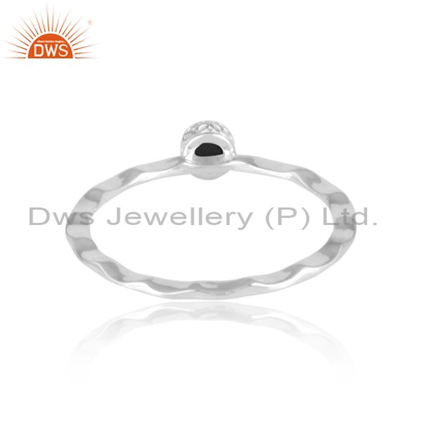 Fine 925 Silver Round Cut Black Onyx Set Handhammered Ring