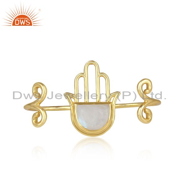 Gold On 925 Silver Rainbow Moon Stone Set Hamsa Ring