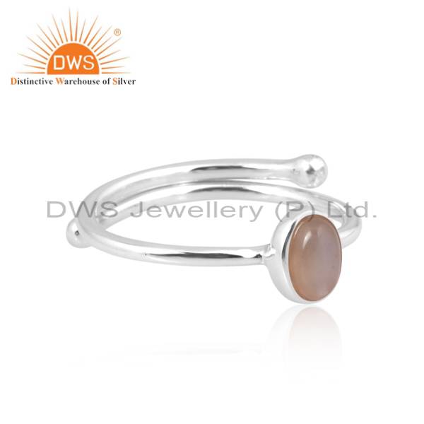 Gray Moonstone Oval Cabochon Silver Ring - Elegant Style