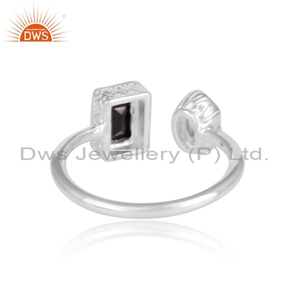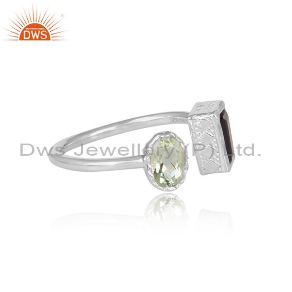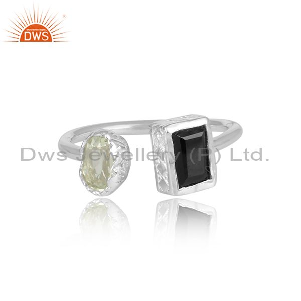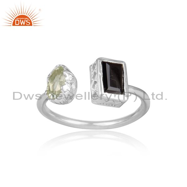 Green Amethyst, Black Spinal Set Fine 925 Silver Open Ring