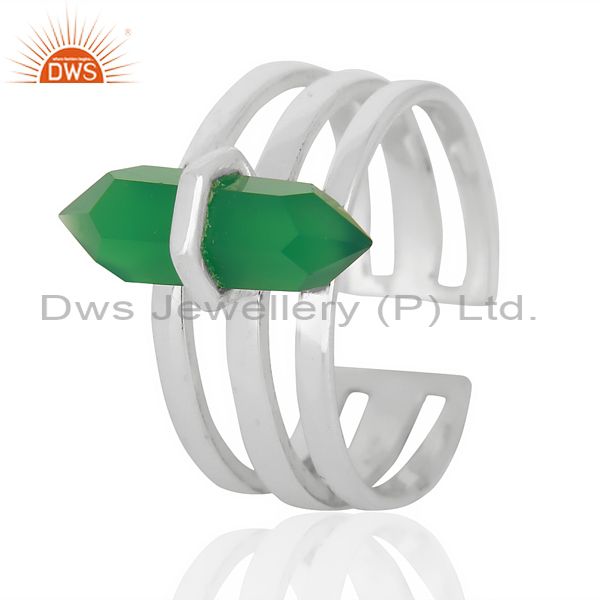Green Onyx Wide Horn Adjustable Openable 92.5 Sterling Silver Ring