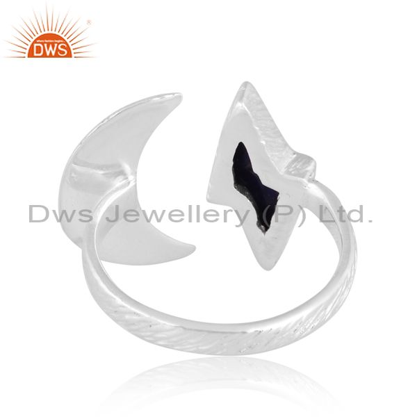 Half-Moon Shaped Silver Ring With Lapis Thunder Shaped Stone