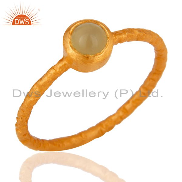 Hammered 22K Gold Plated 925 Sterling Silver Chalcedony Gemstone Stacking Ring