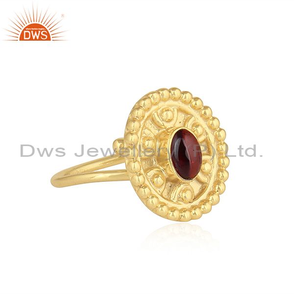 Hand Craved Gold Plated 925 Silver Garnet Gemstone Ring Jewelry