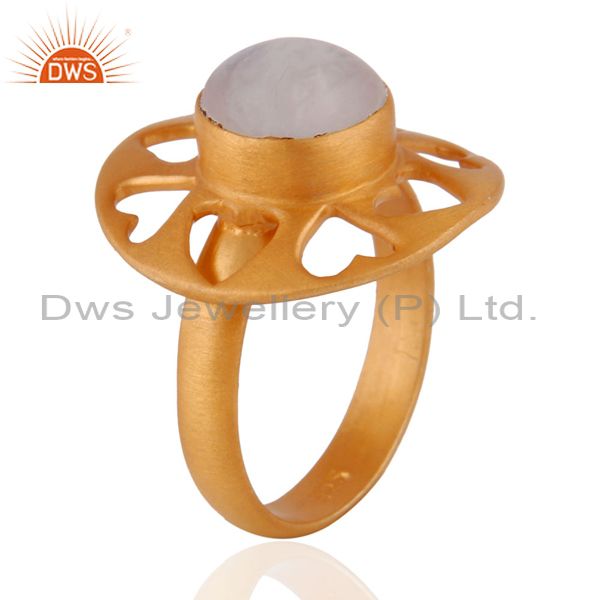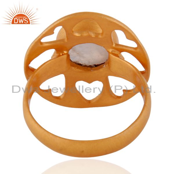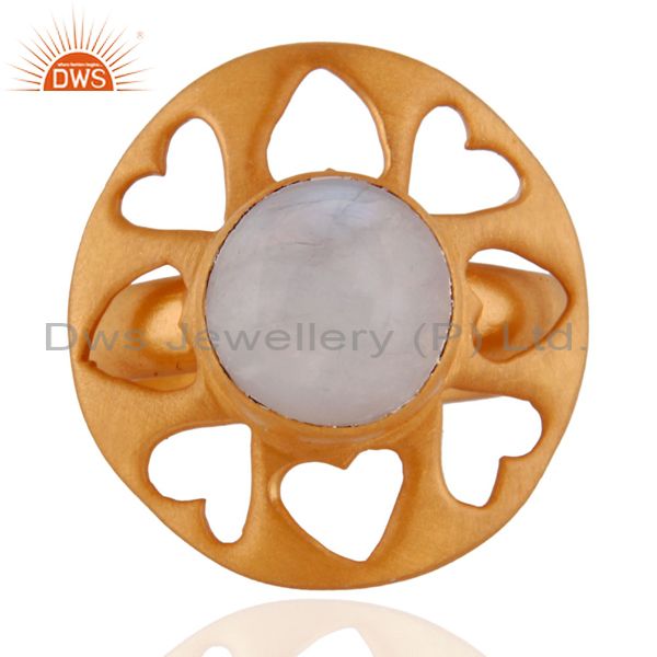 Handcrafted 925 Sterling Silver Rainbow Moonstone Ring With 24K Gold Plated