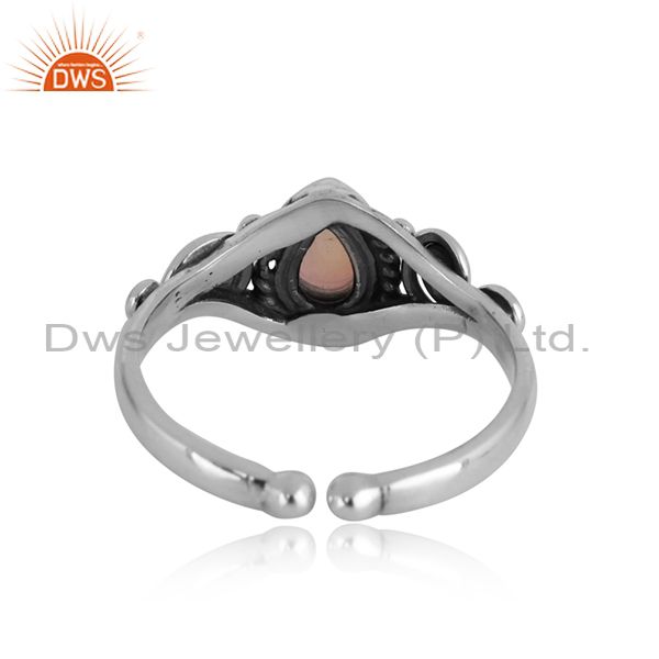 Handcrafted Dainty Textured Ethiopian Opal Ring in Oxidized Silver
