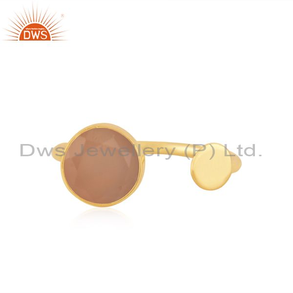 Handmade 925 Silver Gold Plated Rose Chalcedony Gemstone Girls Ring Wholesale