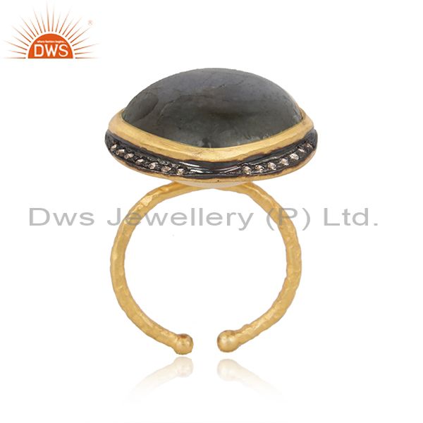 Handmade Design Gold on Silver Labradorite Cz Ring