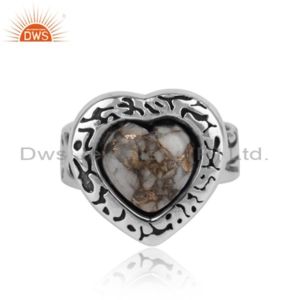 Handmade Textured Oxidized Sterling Silver Ring with Mohave Opal
