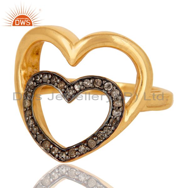 Heart Design 18K Gold Plated 925 Sterling Silver Pave Diamond Ring Jewelry