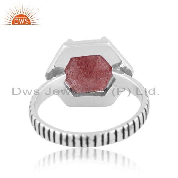 Hexagon Cut Strawberry Quartz Set Oxidized 925 Silver Ring