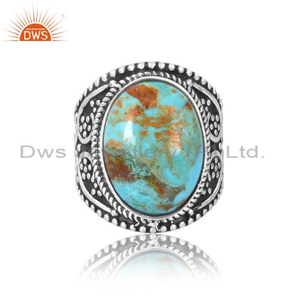 Kingman Turquoise Oxidized Finger Ring For Girls