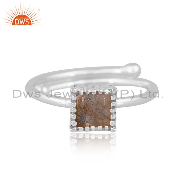 Labradorite Cabochon Square With White Sterling Silver Ring