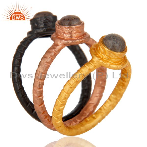 Labradorite Studded Rose And Black Plated Stacking Designer Ring