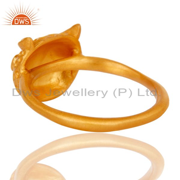 Mind Blowing Handmade Owl Design White Zirconia Brass Ring With 18k Gold Plated
