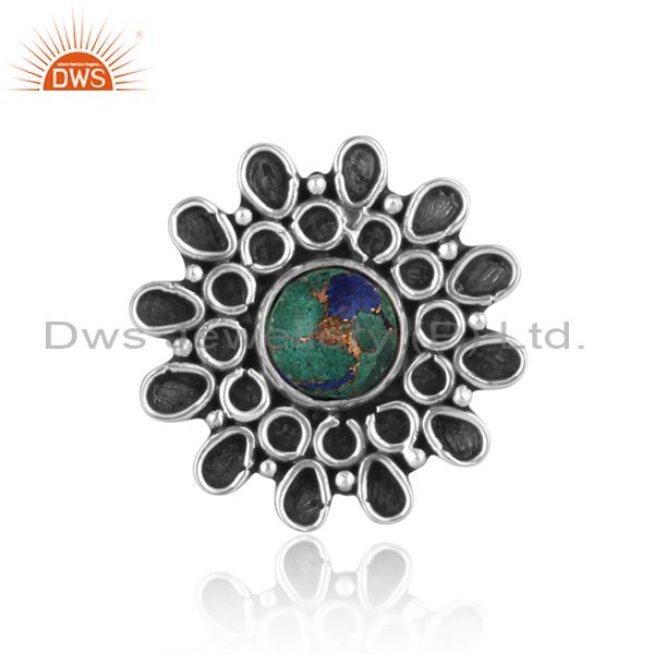 Mojave Copper Azurite Malachite Set Oxide Silver Boho Ring