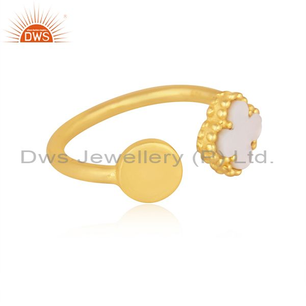 Mother Of Pearl Coin Set Gold On Silver Open Designer Ring