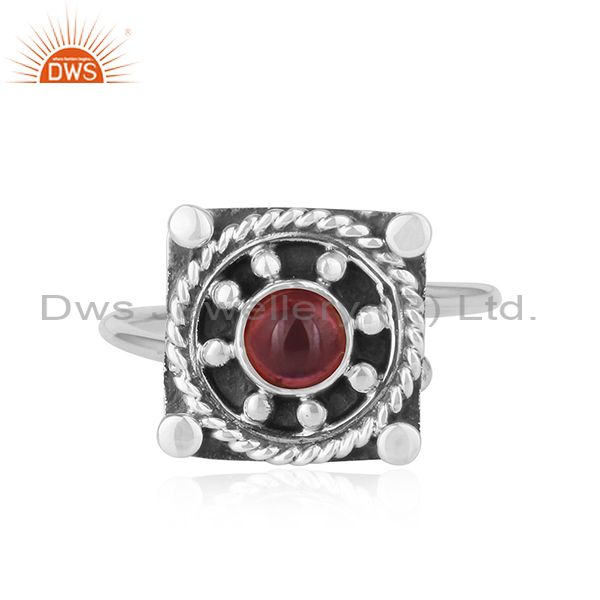 Natural Garnet Vintage Design Sterling Silver Oxidized Ring For Womens