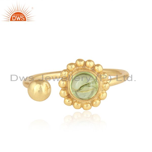 Natural Peridot Gemstone Designer Gold Plated Silver Rings Jewelry