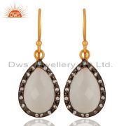 Natural White Moonstone Sterling Silver Gold Plated Gemstone Ring With Cz