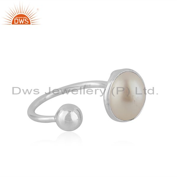 New Arrival Natural Pearl Gemstone Fine Silver Womens Ring Jewelry