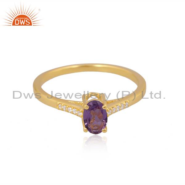 Oval Amethyst & Round Cz Ring - Sparkling & Unique Design!