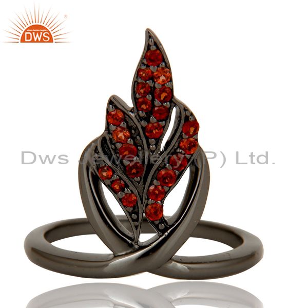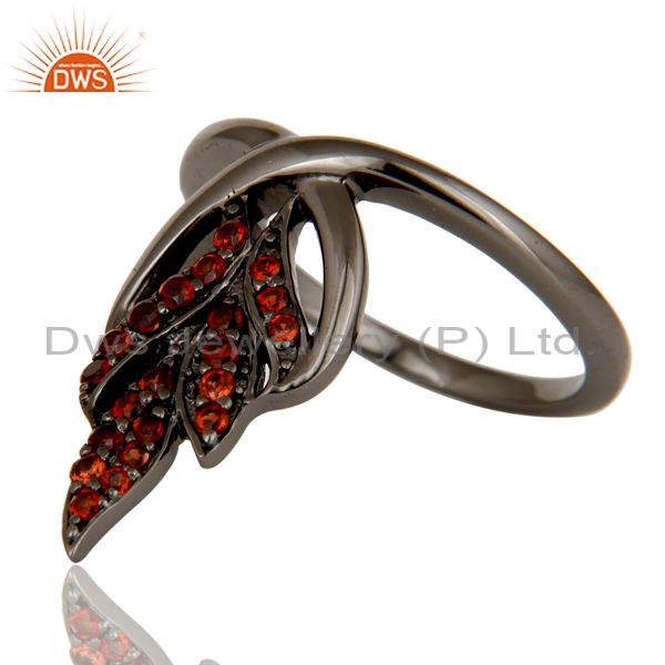 Oxidized Sterling Silver and Garnet Gemstone Ring Beautiful Designer Jewelry