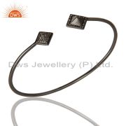 Pave Diamond Black Oxidized Sterling Silver Pyramid Shape Ring Statement Ring
