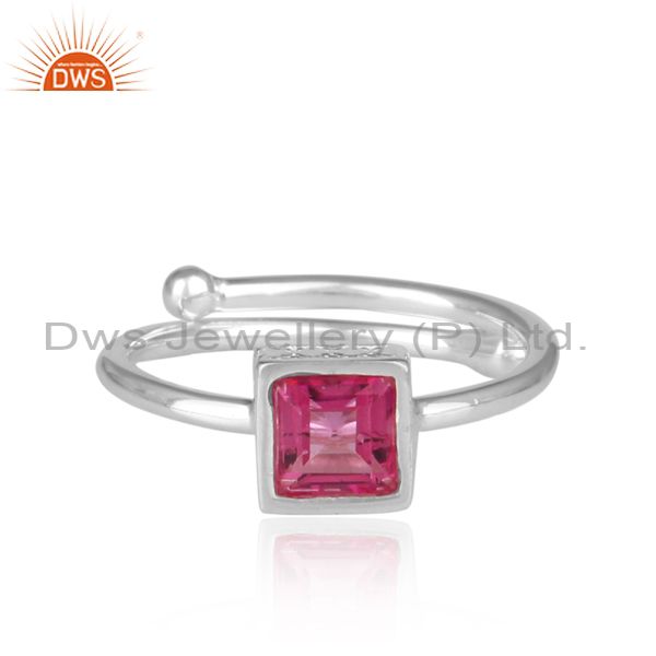 Pink Topaz Set Handmade Fine Silver Sterling Statement Ring