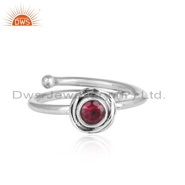 Pink Topaz Set In Sterling Silver Oxidized Crown Ring