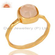 Rose Chalcedony Cushion Cut 14K Gold Plated Sleek Ring In Solid Sterling Silver