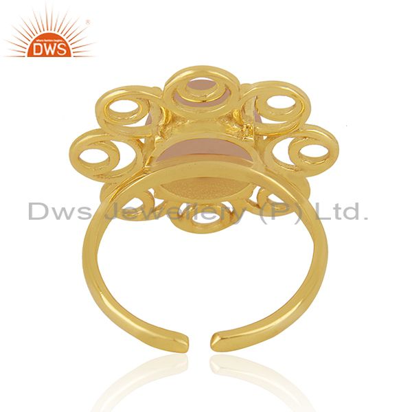 Rose Chalcedony Gemstone Gold Plated 925 Silver Floral Design Ring Suppliers