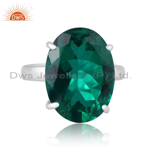 Rough Cut Doublet Zambian Emerald Quartz Fine Silver Ring