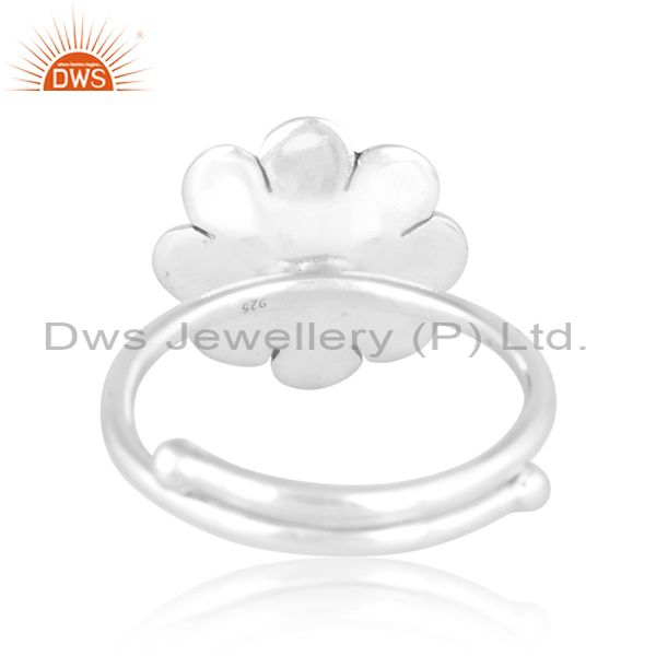 Round Pearl Set Gold On Fine 925 Silver Designer Floral Ring