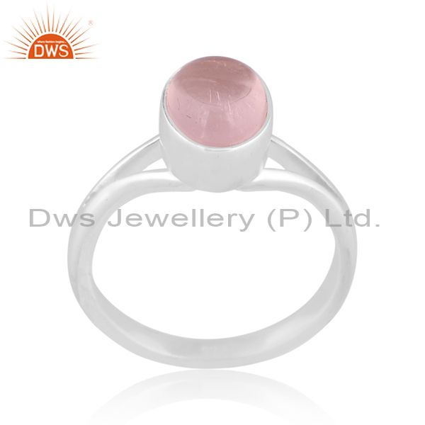 Round Rose Quartz Set Oxidized 925 Silver Statement Ring