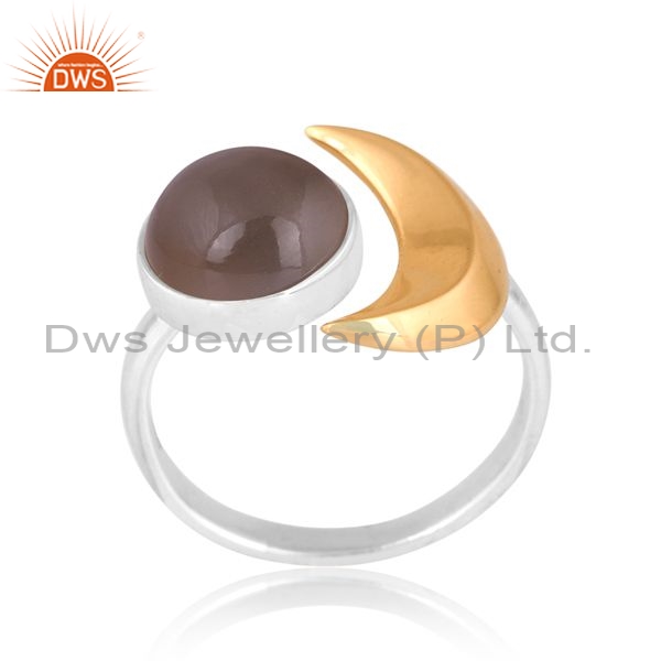 Silver Gray Moonstone Ring With Cabushion Round Cut
