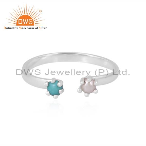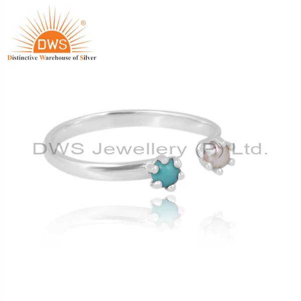 Silver Pearl Cabochon Round Ring With Arizona Turquoise