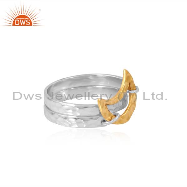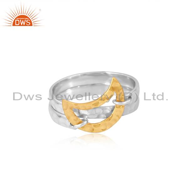 Silver Wire Wrapped Gold Color Moon Ring For Couple