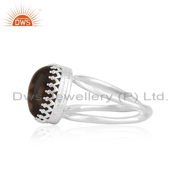 Smoky Quartz Gemstone Crown Design 925 Silver Designer Ring Manufacturer INdia