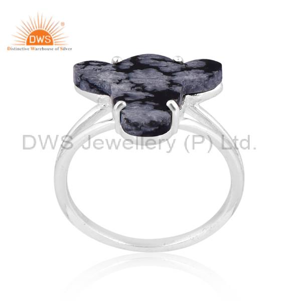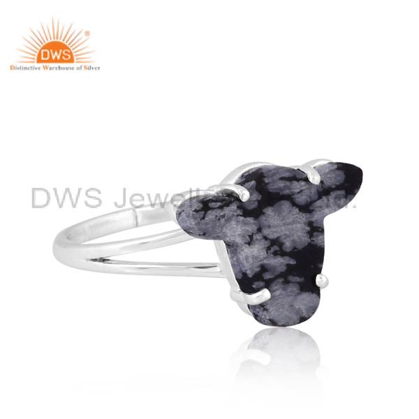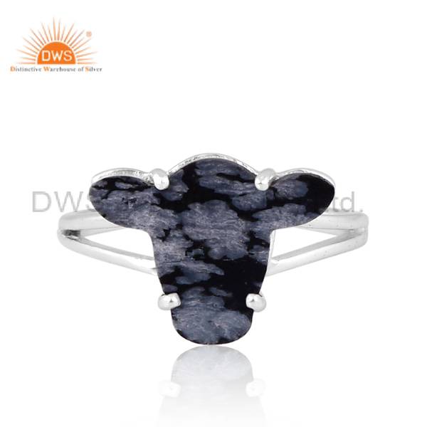 Snowflake Obsidian Cow Head Ring - Sterling Silver