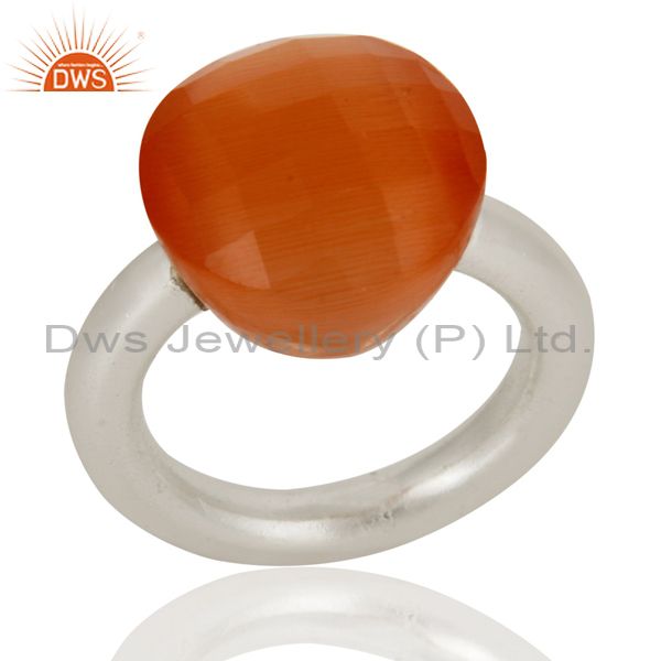 Solid Sterling Silver Natural Peach Moonstone Faceted Gemstone Stacking Ring