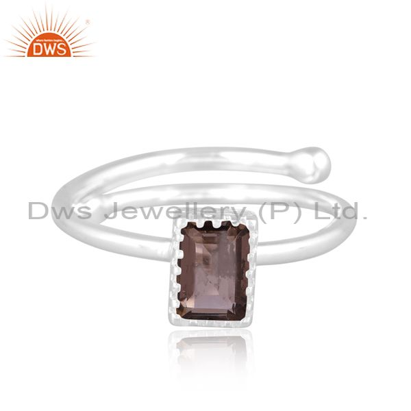 Sterling Silver Adjustable Ring With Smoky Baguette Stone