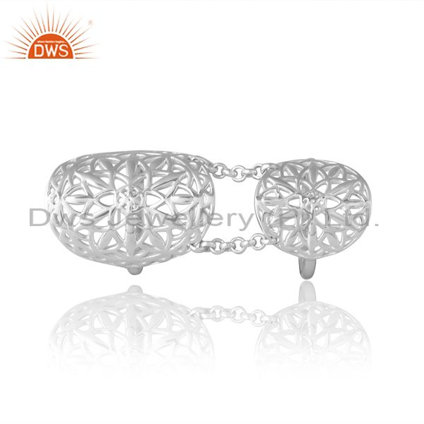 Sterling Silver Double Ring With Chain Connector