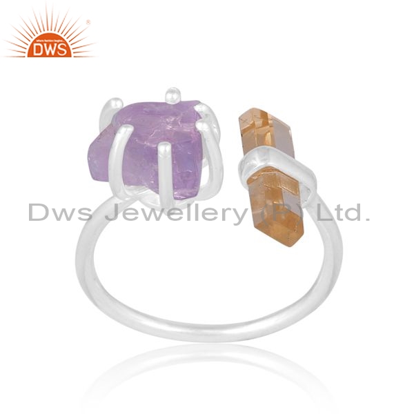 Sterling Silver Ring With Citrine And Pink Amethyst