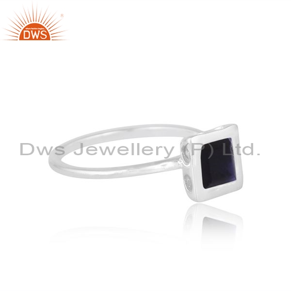 Sterling Silver White Ring With Iolite Square Cut Stone