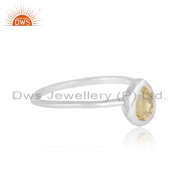 Sterling Silver White Ring With Lemon Topaz Pear Cut