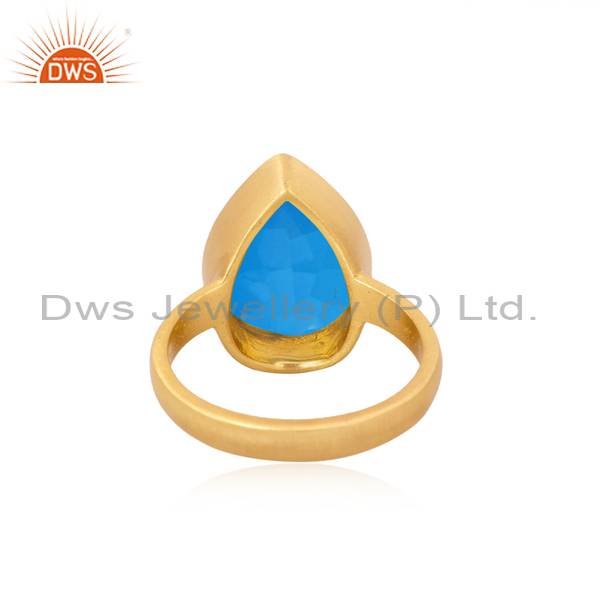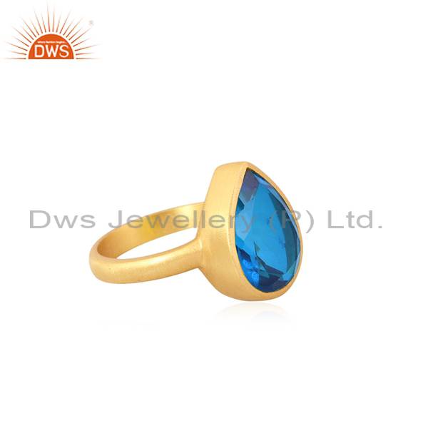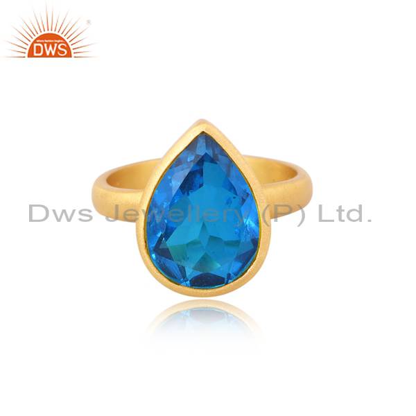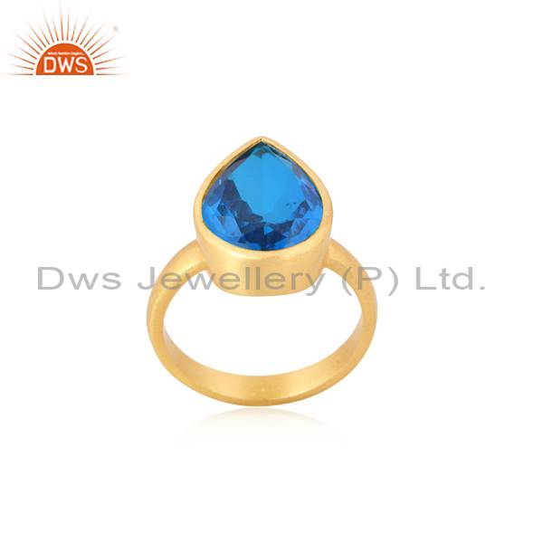 Stunning Brass Ring: Pear Cut Swiss Blue Topaz Doublet Quartz