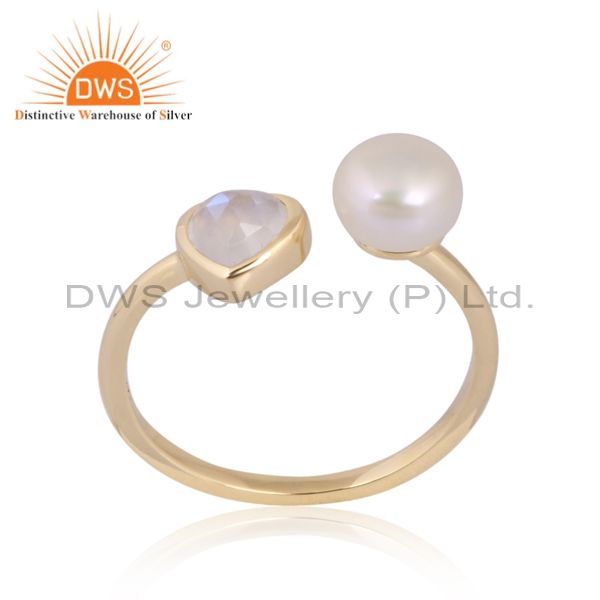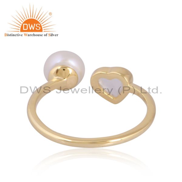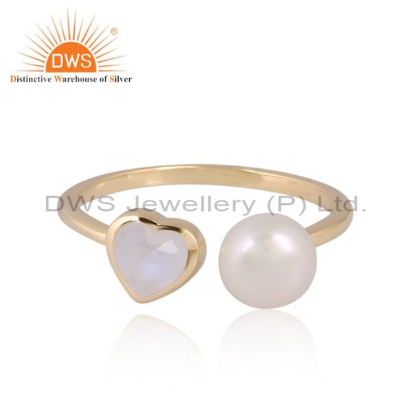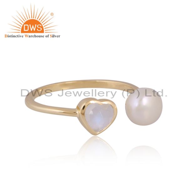 Stunning Heart Rainbow Moonstone And Pearl Gold Ring