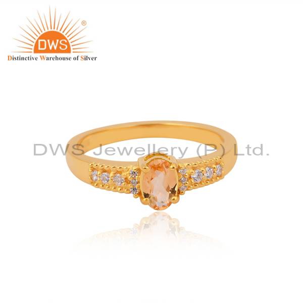 Stunning Sparkling Citrine And Cz Ring - Exquisite Jewelry