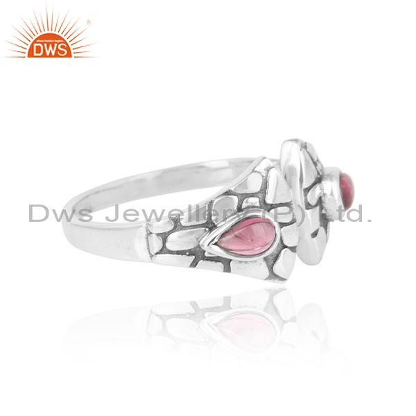 Textured Ring in Oxidized Silver Adorn with Pink Tourmaline